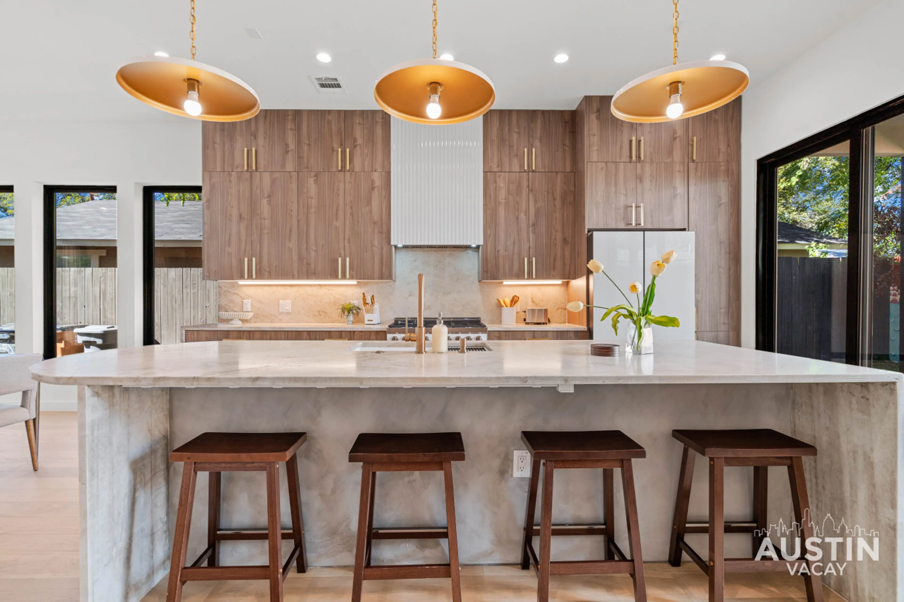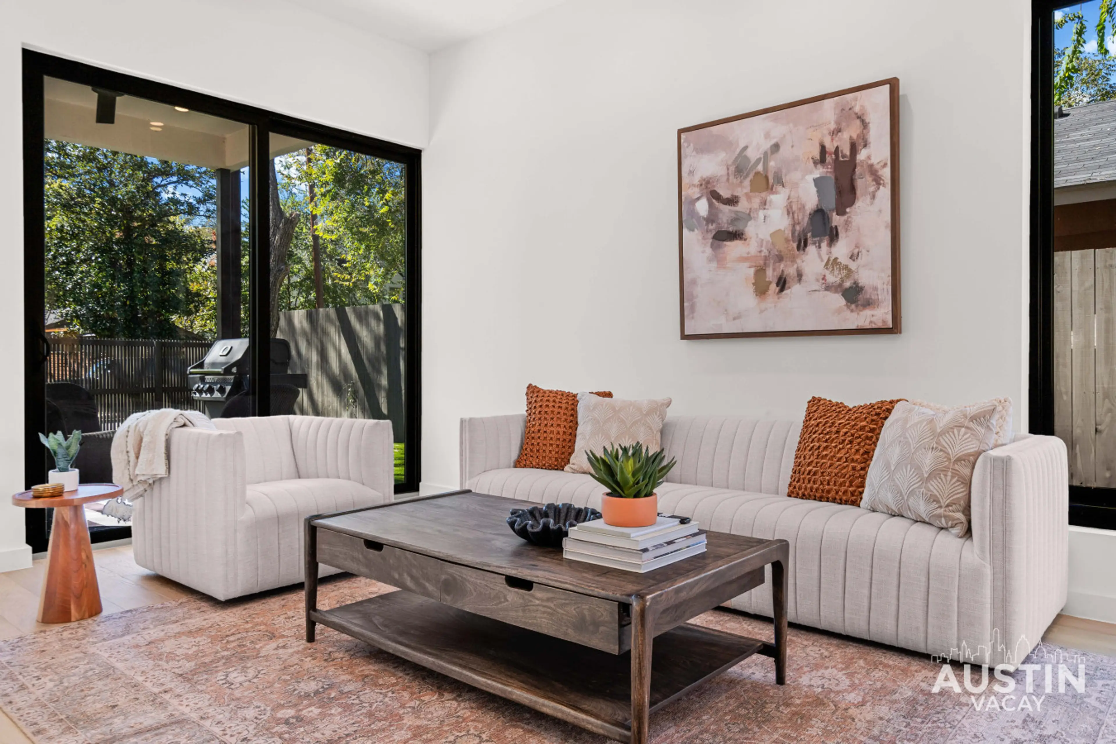 Prime location in East Austin near East Cesar Chavez and Lady Bird Lake. This 4BR, 3.5BA home includes two primary suites, a second-story balcony, and private front and back yards with turf, seating, and a grill for easy outdoor hangouts. The chef’s kitchen offers a coffee bar and wine fridge, with ...