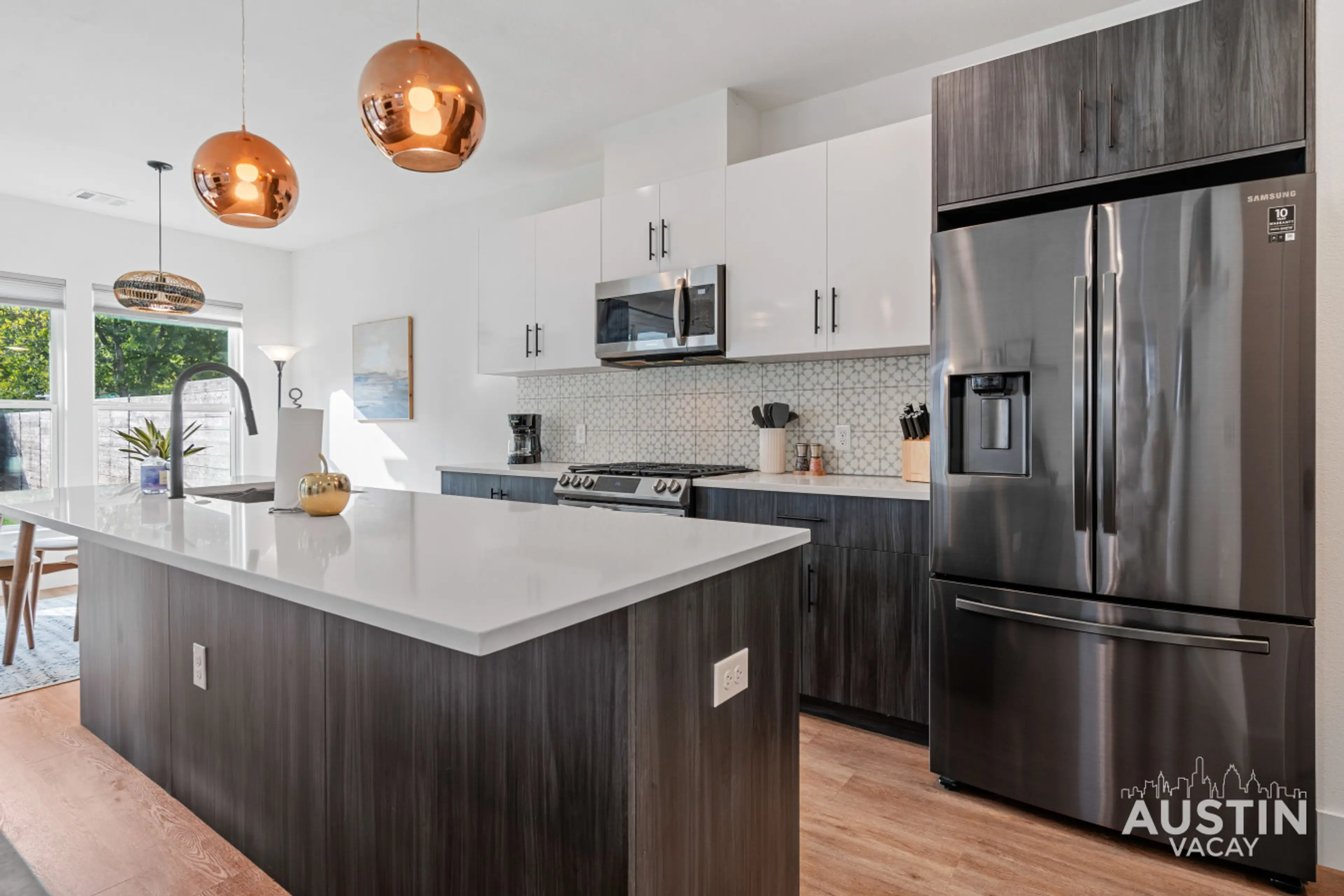 Experience a stylish East Austin stay in this modern 3 bedroom, 2.5 bathroom home near the Mueller District. This pet-friendly retreat features a private fenced backyard, a covered patio, a fully equipped gourmet kitchen, and secure garage parking. With quick access to Downtown, the Moody Center, pa...