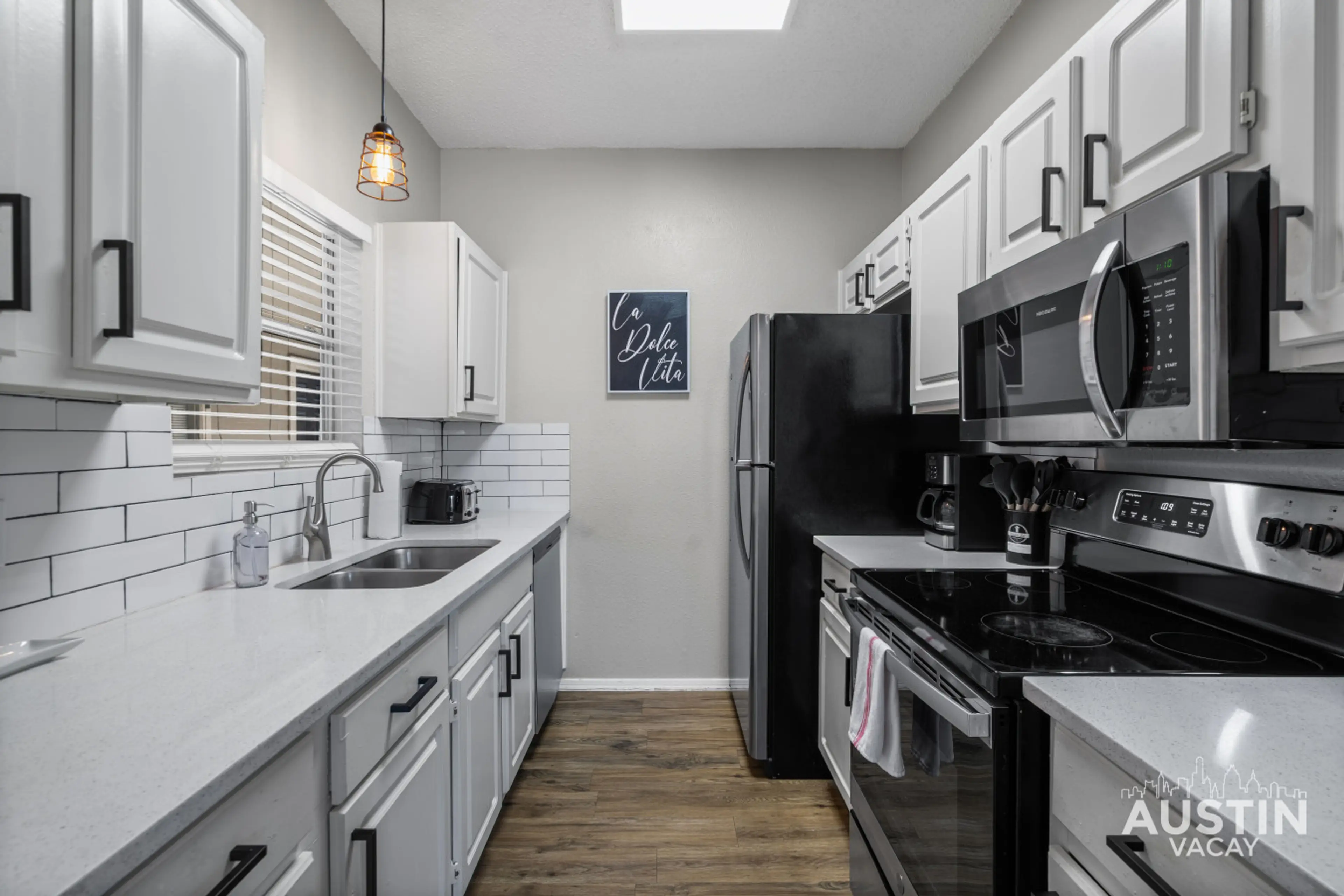 Discover your perfect North Austin condo for longer stays! This 1-bedroom, 1-bath rental puts you minutes from The Domain, Q2 Stadium, major tech hubs, and essentials along Metric Blvd, plus nearby parks and trails. Inside: hi-speed WiFi, queen bed w/ hotel linens, ensuite bath, work desk, and priva...