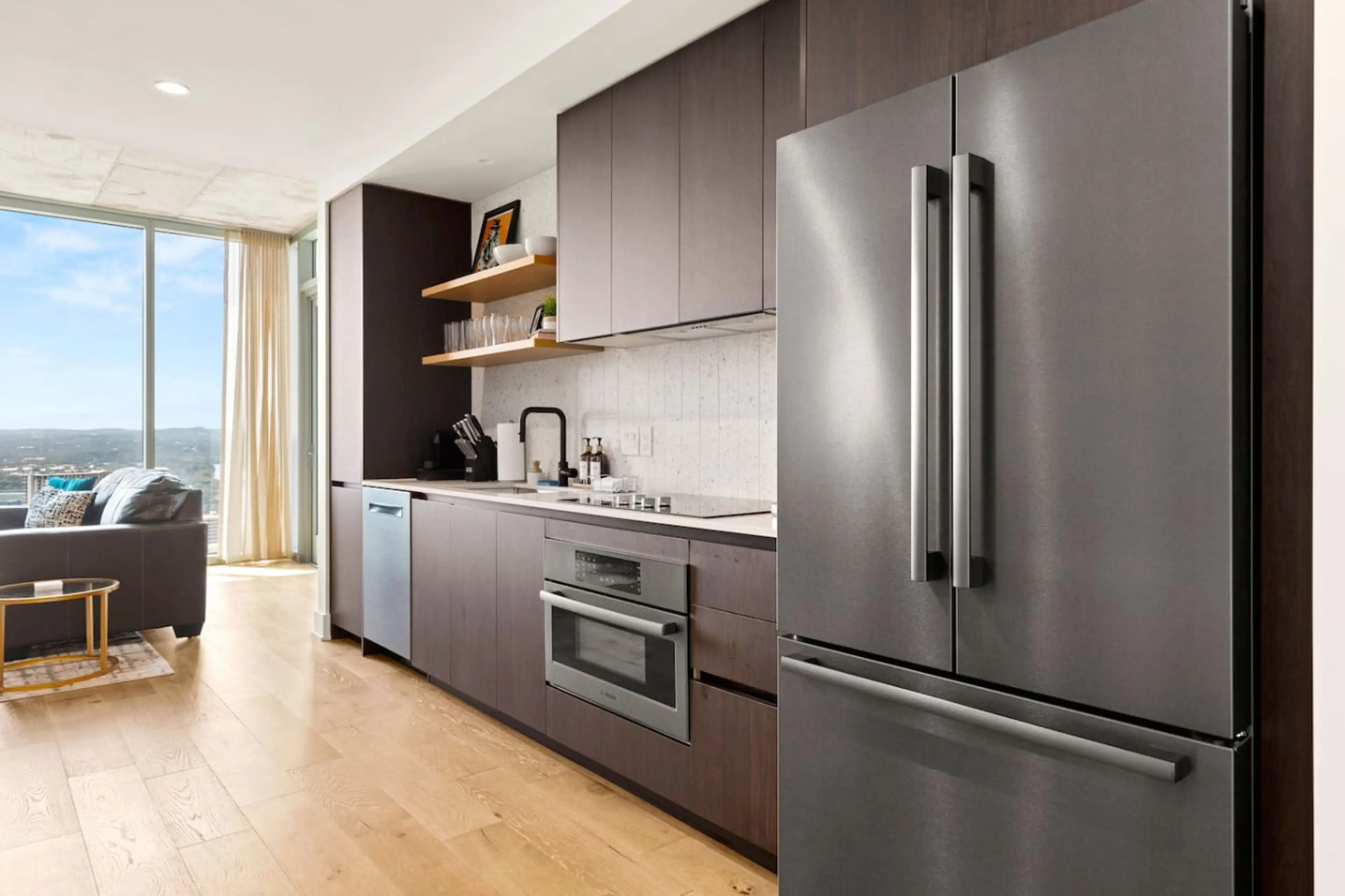 Enjoy stunning views of downtown Austin and Lady Bird Lake from this stylish condo, located just steps from the vibrant Rainey Street District. Set in a modern high-rise with upscale amenities, this unit has been thoughtfully furnished to offer a contemporary, comfortable space perfect for both shor...