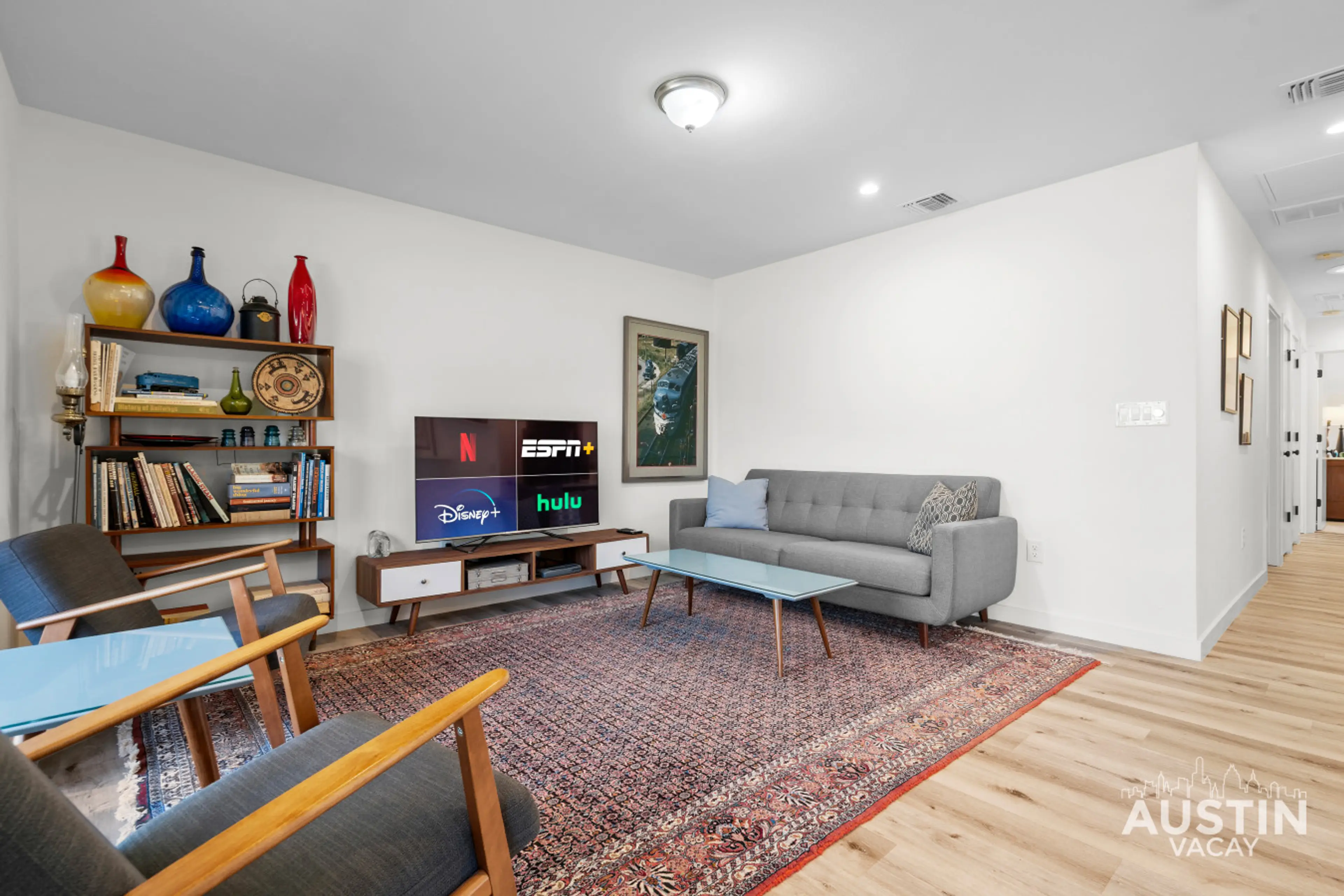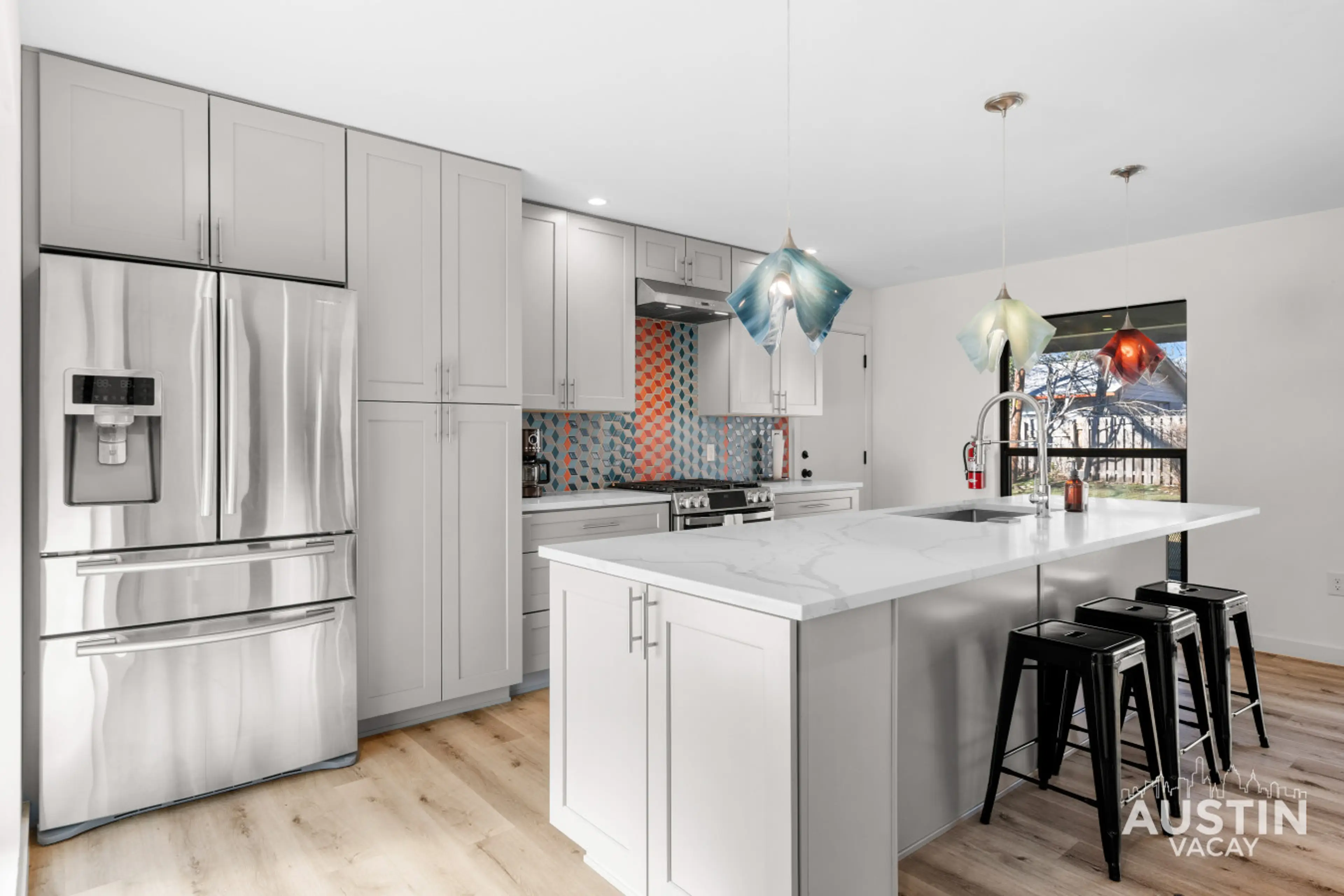 Escape to this mid-century modern 3-bedroom home with an open kitchen, airy living room and private fenced backyard. Located in Austin’s Pinecrest neighborhood, it’s a short drive or bike ride to downtown, the UT campus, local parks and the new MLS stadium. Walk or bike to nearby coffee shops, groce...