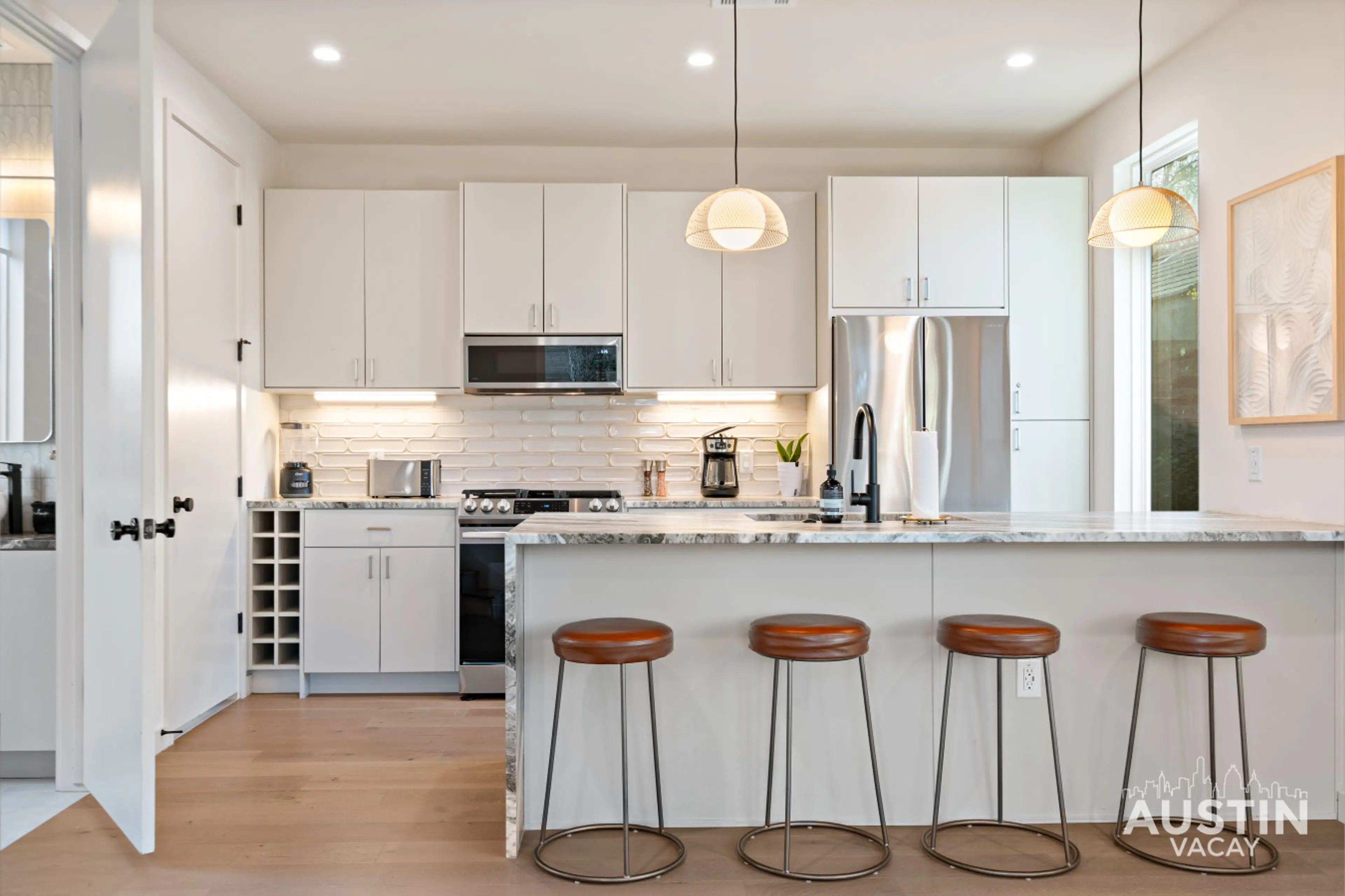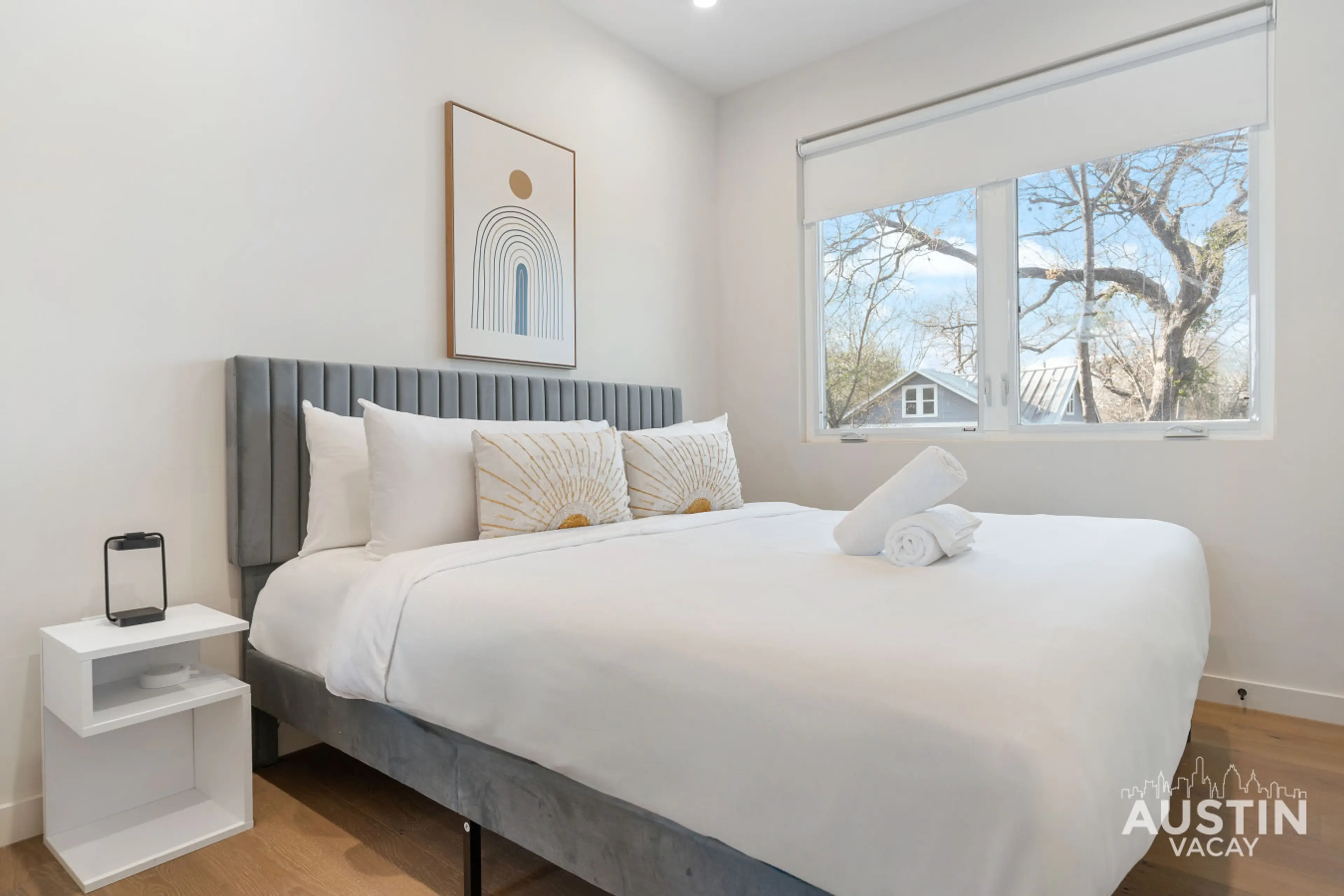 Stay in this brand-new East Austin home, just 5 minutes from Rainey St and 6 minutes from UT Stadium! Perfect for groups or families, this home offers 2 bedrooms, 2.5 baths, and 2 cozy, king beds. Relax in the spacious living room or cook in the fully-equipped kitchen. Enjoy your private backyard fo...